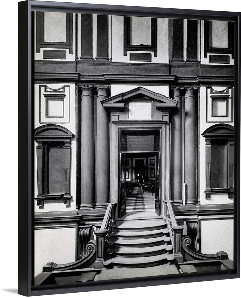 <p>View of the entrance of the Medicean-Laurentian Library from the anteroom. The library was built in the 16th century to house books and manuscripts collected by the Medici family.</p>