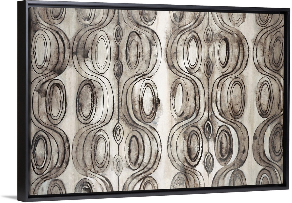 <p>Abstract painting of organic shapes in neutral colors creating an intricate pattern.</p>