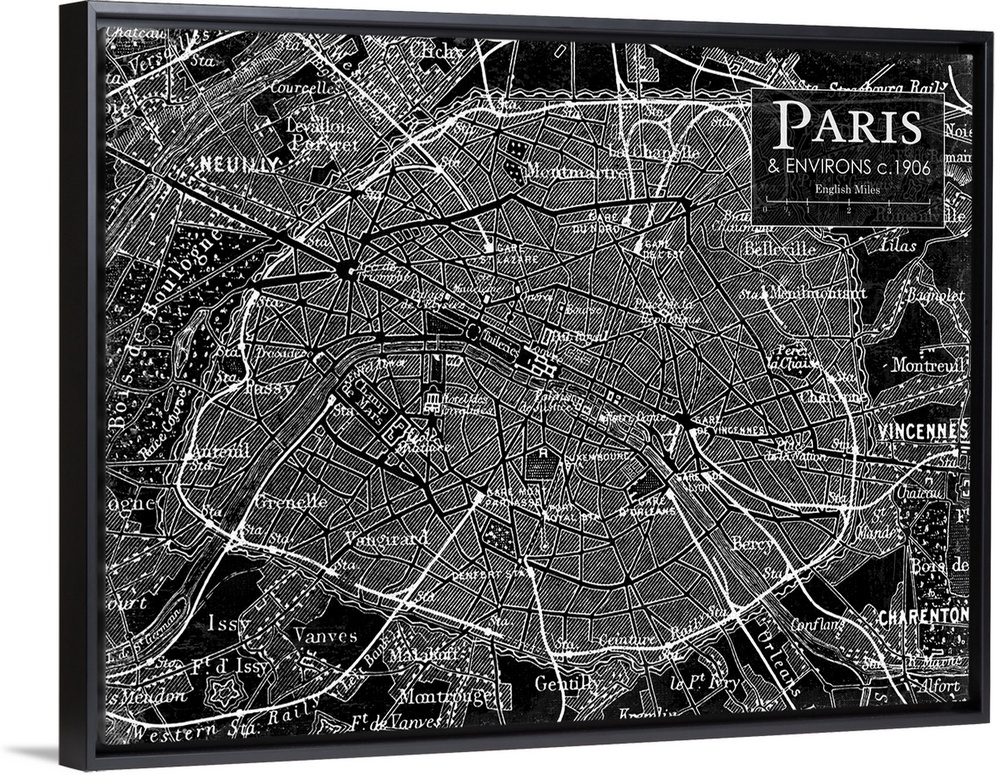 <p>Rustic contemporary art map of Paris districts, in black and white.</p>
