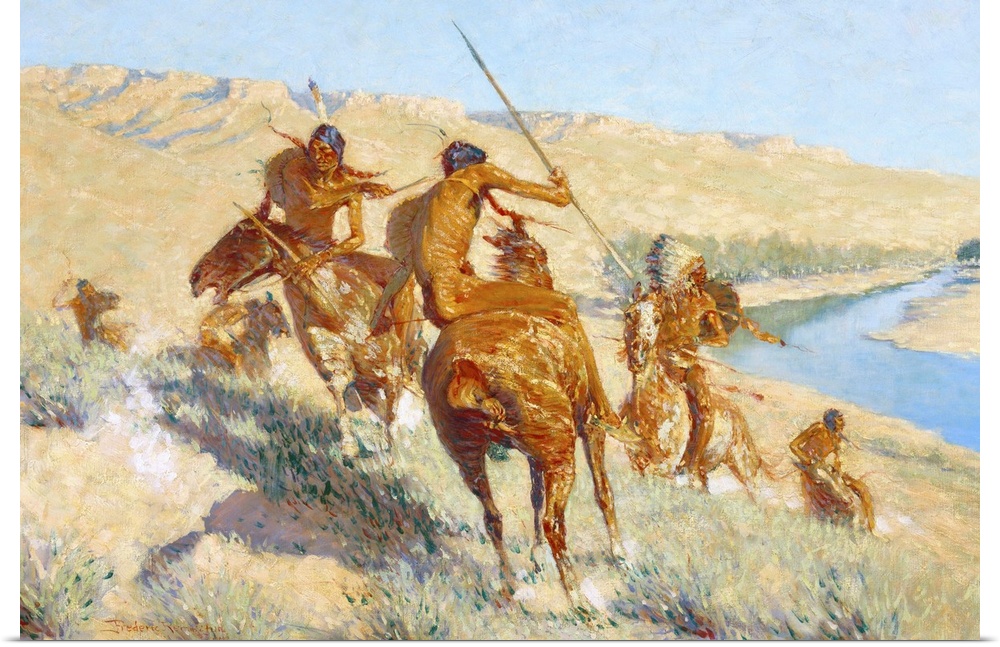 <p>Though he was born in New York, American artist Frederic Remington recreated scenes from the old American West. His canvas paintings and sketches were considered largely observational at the time and are now yielded as piece of American history.</p>