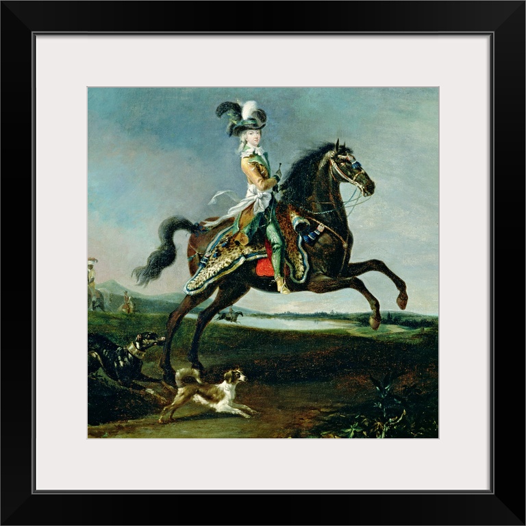 <p>XIR67544 Equestrian Portrait of Marie-Antoinette (1755-93) in Hunting Attire, 1783 (oil on canvas) by Brun or Brun de Versoix, Louis Auguste (1758-1815); 60x66 cm; Chateau de Versailles, France; (add. info.: a cheval en costume de chasse); Giraudon; French, out of copyright</p>
