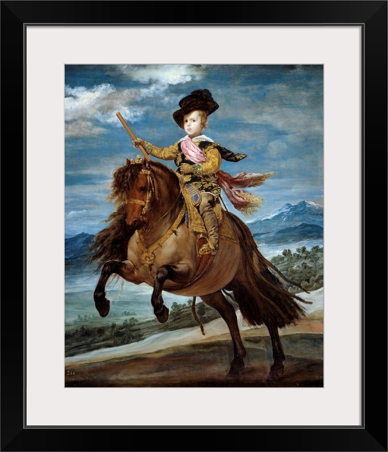<p>Equestrian portrait of Prince Baltasar Carlos (1629-1646). Painting by Diego Rodriguez de Silva y Velazquez ( or Velasquez) (1599-1660), 1635. Oil on canvas. 2,09 x 1,73 m. Prado Museum, Madrid, Spain</p>