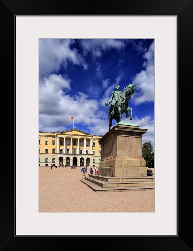 <p>Equestrian statue of King Karl Johan at Royal Palace, Oslo, Norway, Scandinavia</p>