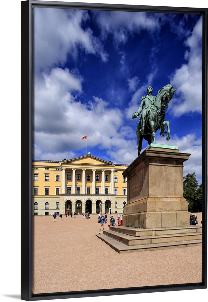 <p>Equestrian statue of King Karl Johan at Royal Palace, Oslo, Norway, Scandinavia</p>