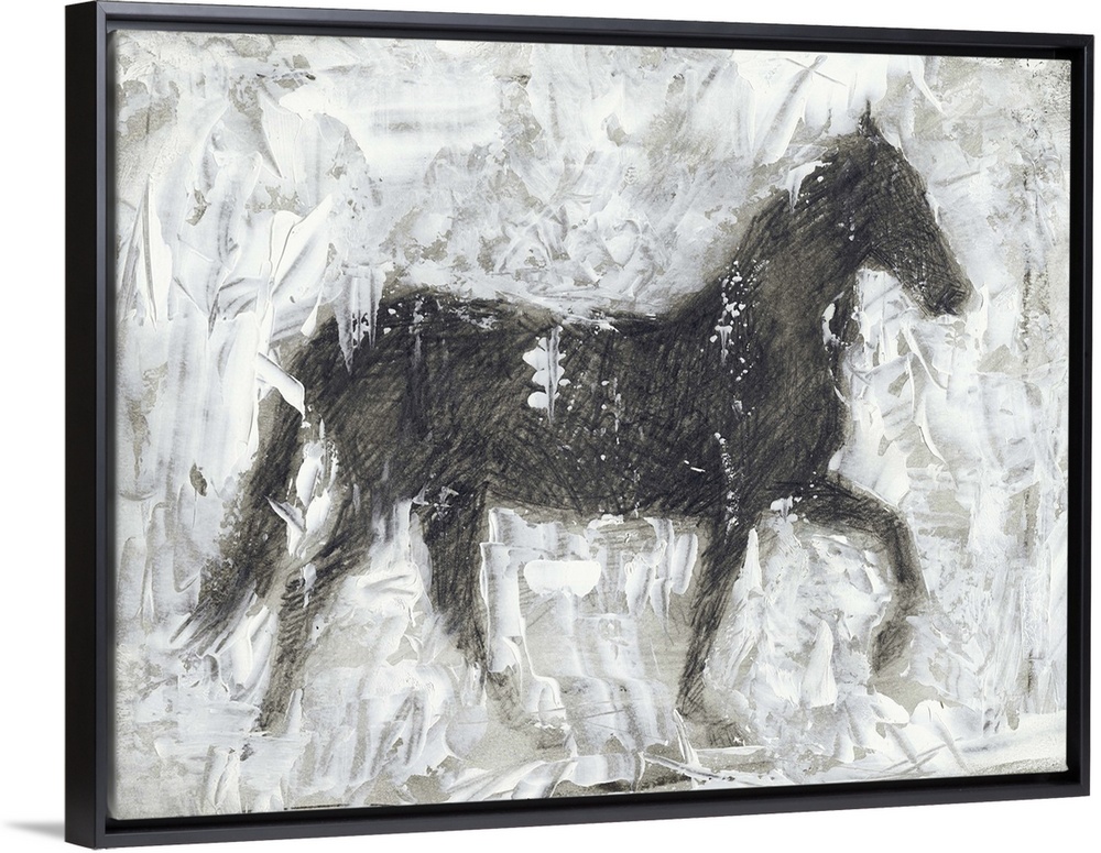 <p>Contemporary artwork of a horses silhouette against a white background.</p>