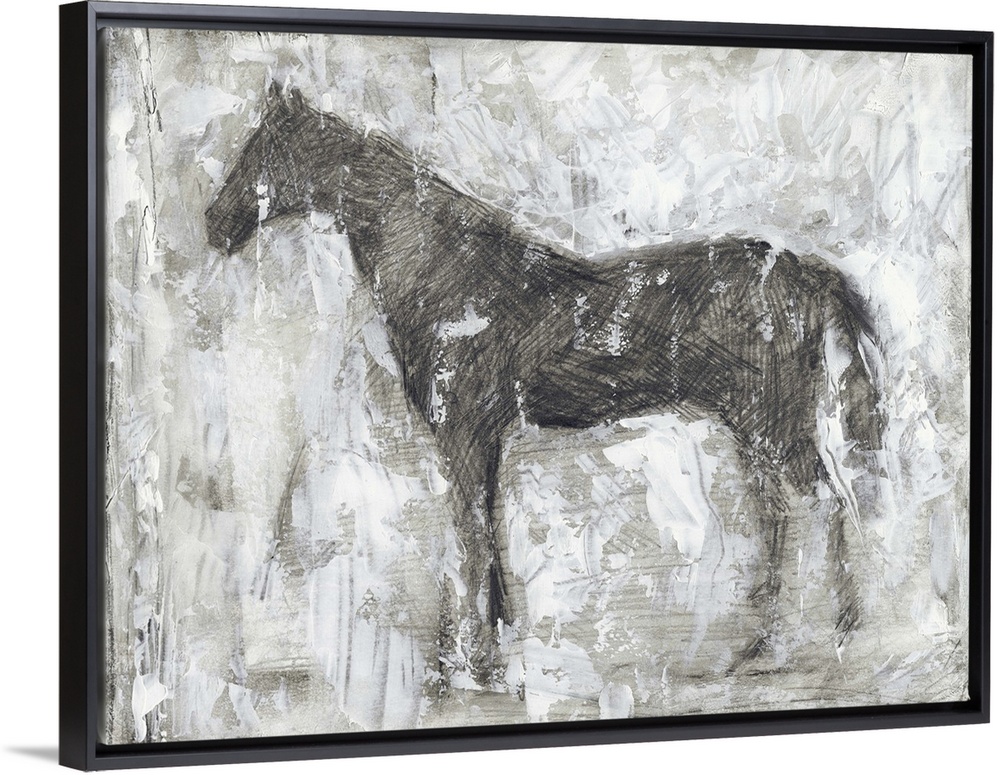 <p>Contemporary artwork of a horses silhouette against a white background.</p>