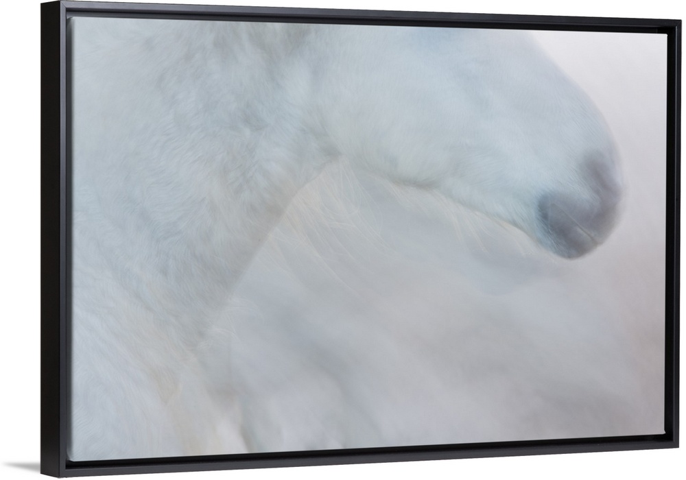 <p>A soft impressionistic image in a dreamy blurred style of the head of a white horse.</p>