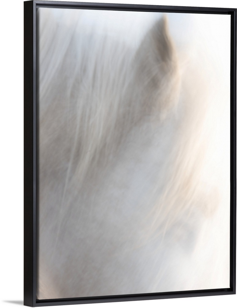 <p>A soft impressionistic image in a dreamy blurred style of the head of a white horse.</p>