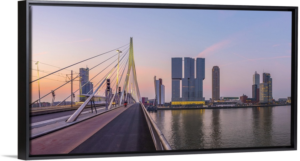 <p>Netherlands, South Holland, Rotterdam, Erasmusbrug, Erasmus Bridge and Wilhelminakade 137, De Rotterdam, The Rotterdam Building</p>