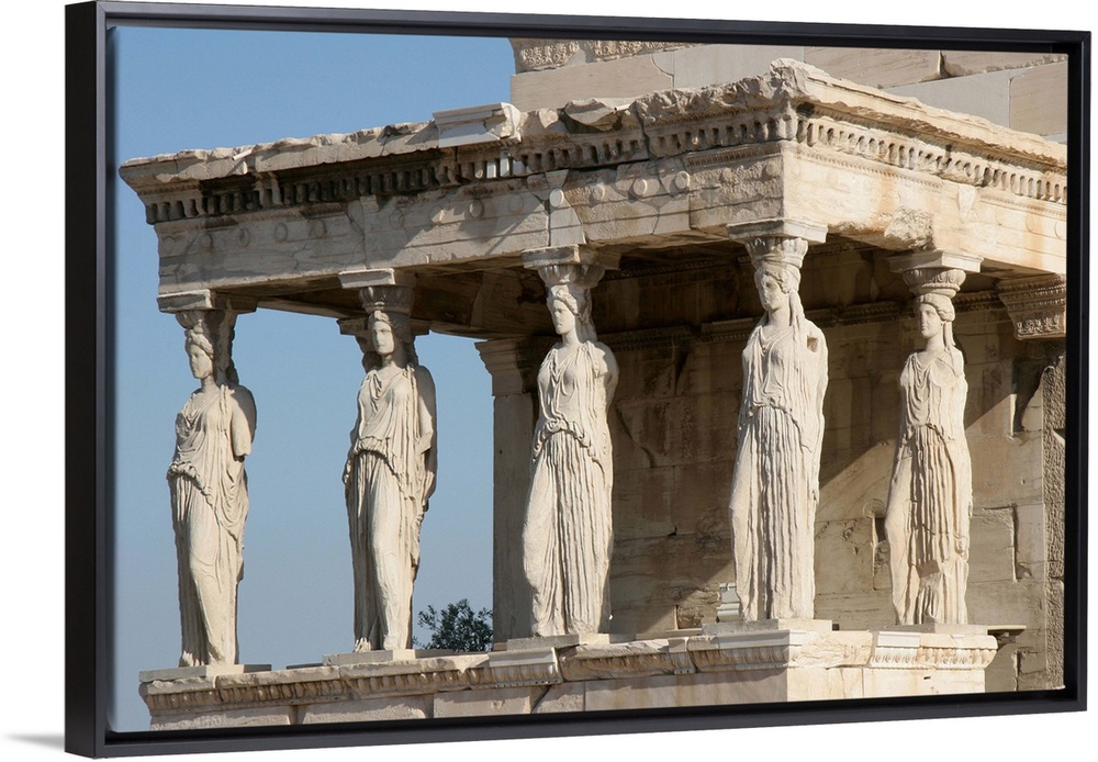 <p>Greek Art. Erechtheum. Temple ionic built between 421-407 BC. Porch of the Caryatids. Acropolis. Athens. Greece.</p>