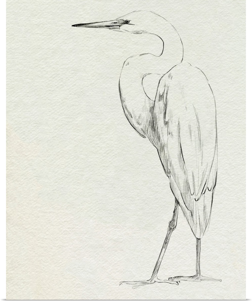 Art Traditional Coastal Living Room Beach House Décor Emma Caroline Decorative Art Drawing Illustrations Wildlife Bird Heron and Egret