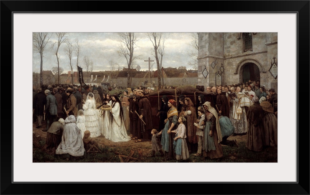 <p>Erecting a Calvary. Procession in front of a Breton church. Painting by Jules Breton (1827-1906,) 1858. 1,35 x 2,5 m . Beaux-Arts Museum, Lille, France</p>