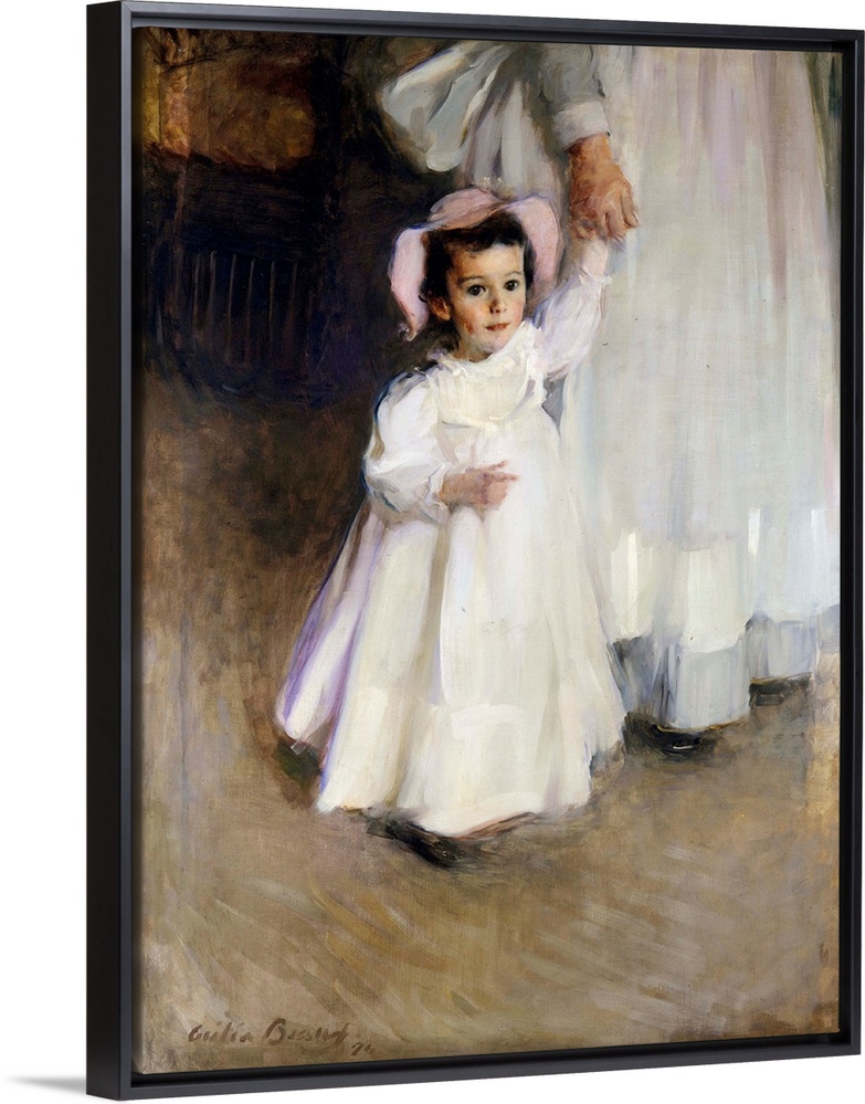 <p>Beaux's two-year-old niece and favorite model, Ernesta Drinker (1892-1981), clutches the hand of her nurse, Mattie, whose figure is boldly cropped at the waist. The radical composition and free brushwork reflect Beaux's appreciation of paintings by Edouard Manet and Edgar Degas. Moving at her toddler's pace across a wide expanse of polished floor, Ernesta is a spiritual descendant of Diego Velazquez's royal children, simultaneously dignified and vulnerable. Mattie's hand serves as a universal symbol of protection and security, and the large expanse of her apron sets the scale for the child's diminutive figure.</p>