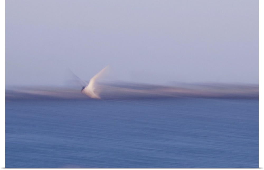 <p>Artistically blurred photo. A tern flying to the sea at the North Sea coast of North Jutland, Denmark.</p>