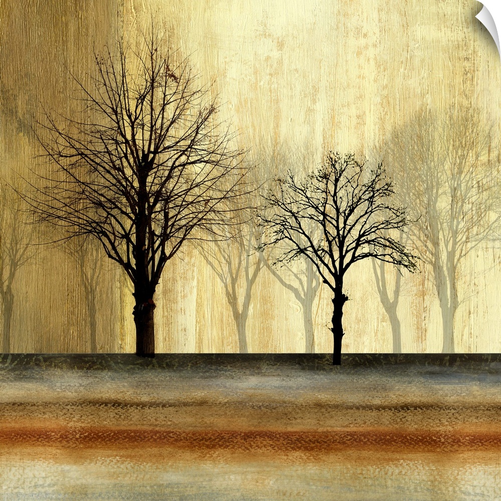 <p>Contemporary home decor artwork of silhouetted trees against a faded background.</p>