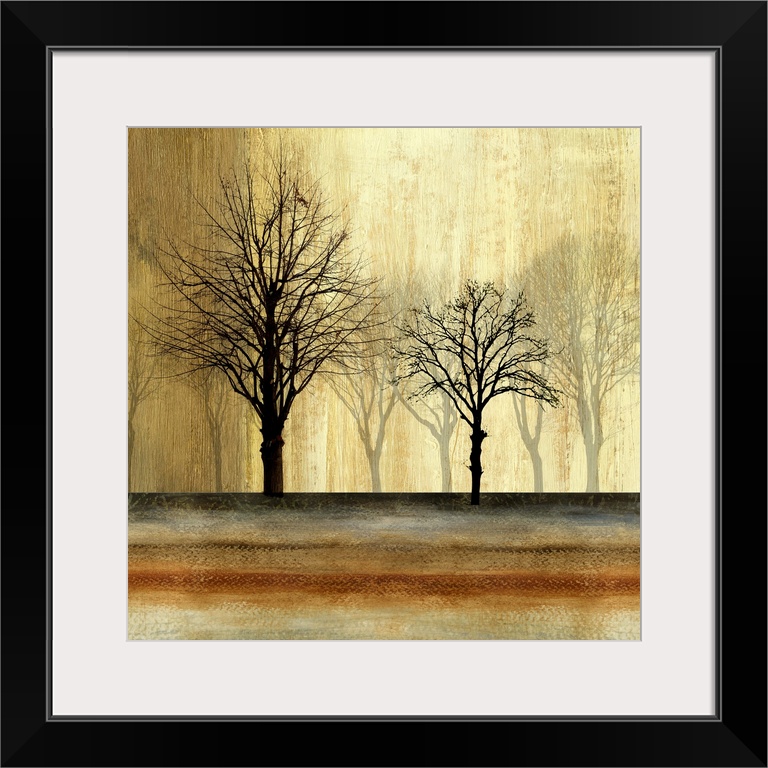 <p>Contemporary home decor artwork of silhouetted trees against a faded background.</p>
