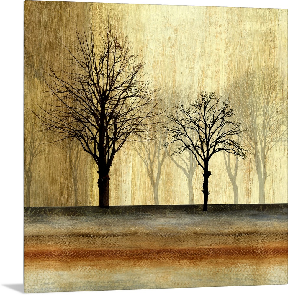 <p>Contemporary home decor artwork of silhouetted trees against a faded background.</p>