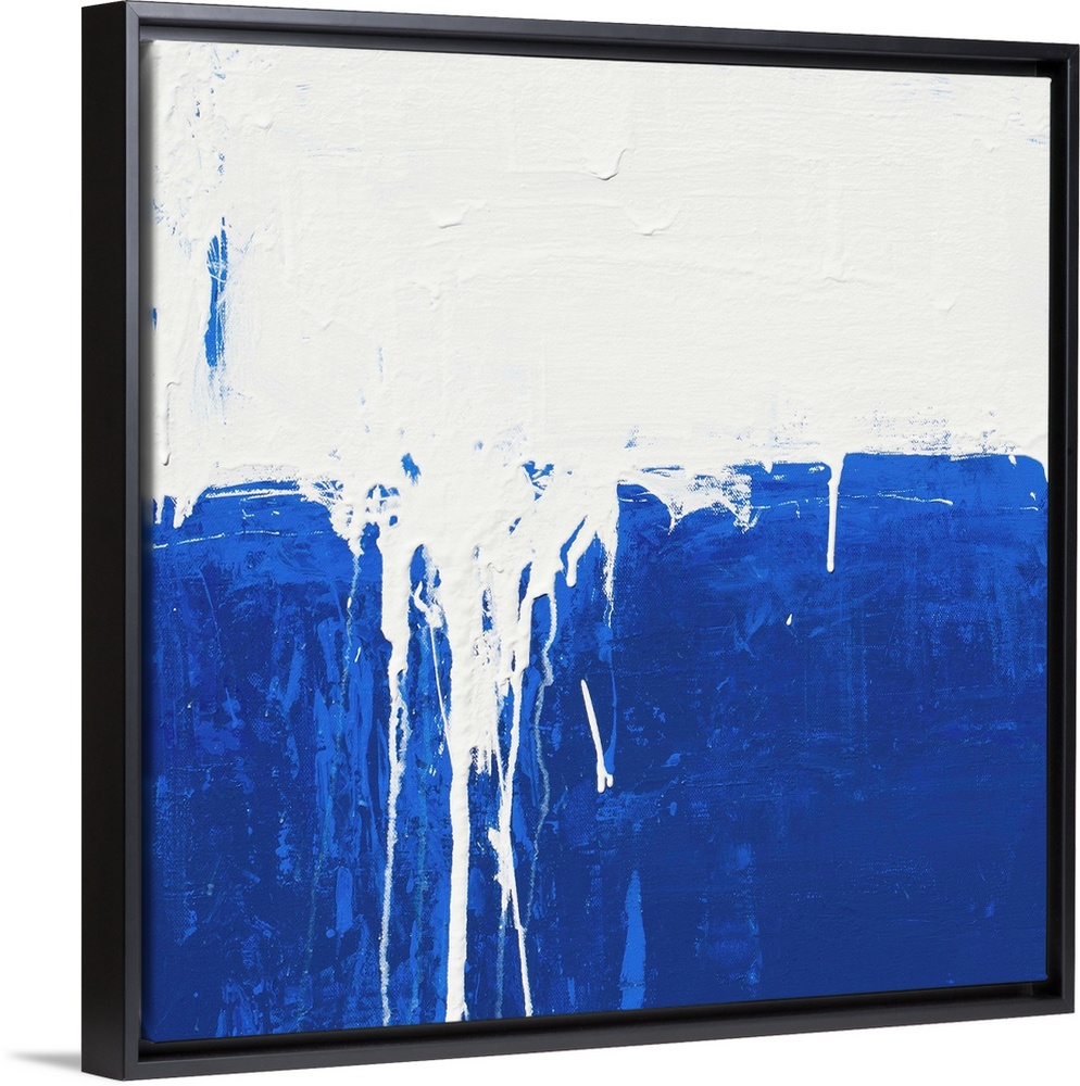 <p>Contemporary abstract colorfield painting using deep blue and white in a distressed style.</p>