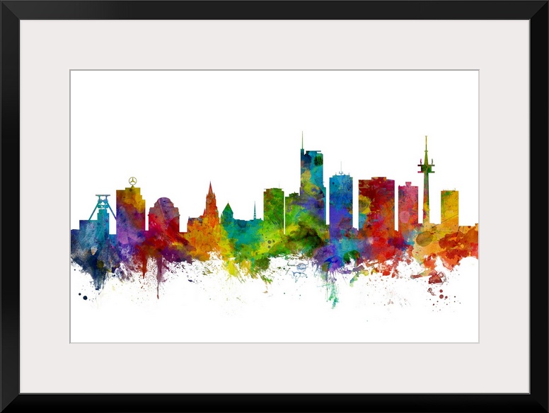 <p>Watercolor art print of the skyline of Essen, Germany</p>