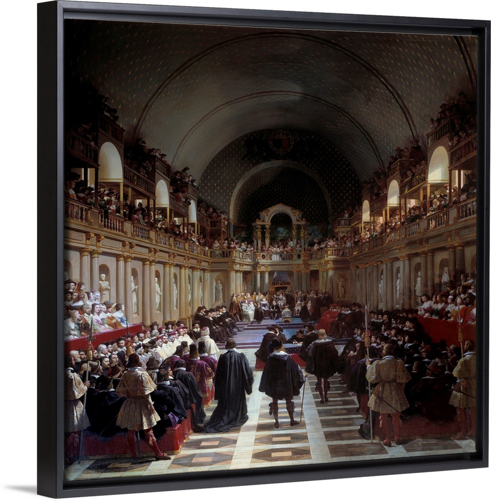 <p>Meeting of the Estates General at the Louvre in Paris on 27 October 1614. King Louis XIII chairs with his mother Marie de Medicis. Painting by Jean Alaux (1786-1864), called the Roman, 1841. 4x3,7 m. Castle Museum, Versailles, France</p>