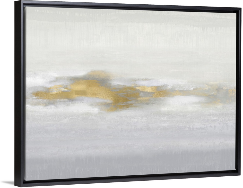 <p>Contemporary abstract artwork in muted gray tones with gold colored brush accents.</p>