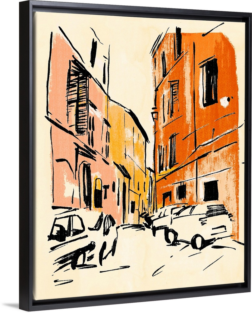 Art Cityscapes College Dorm Décor Decorative Art Drawing Orange Wall Art Coral Peach Painting Transportation Car Annie Warren