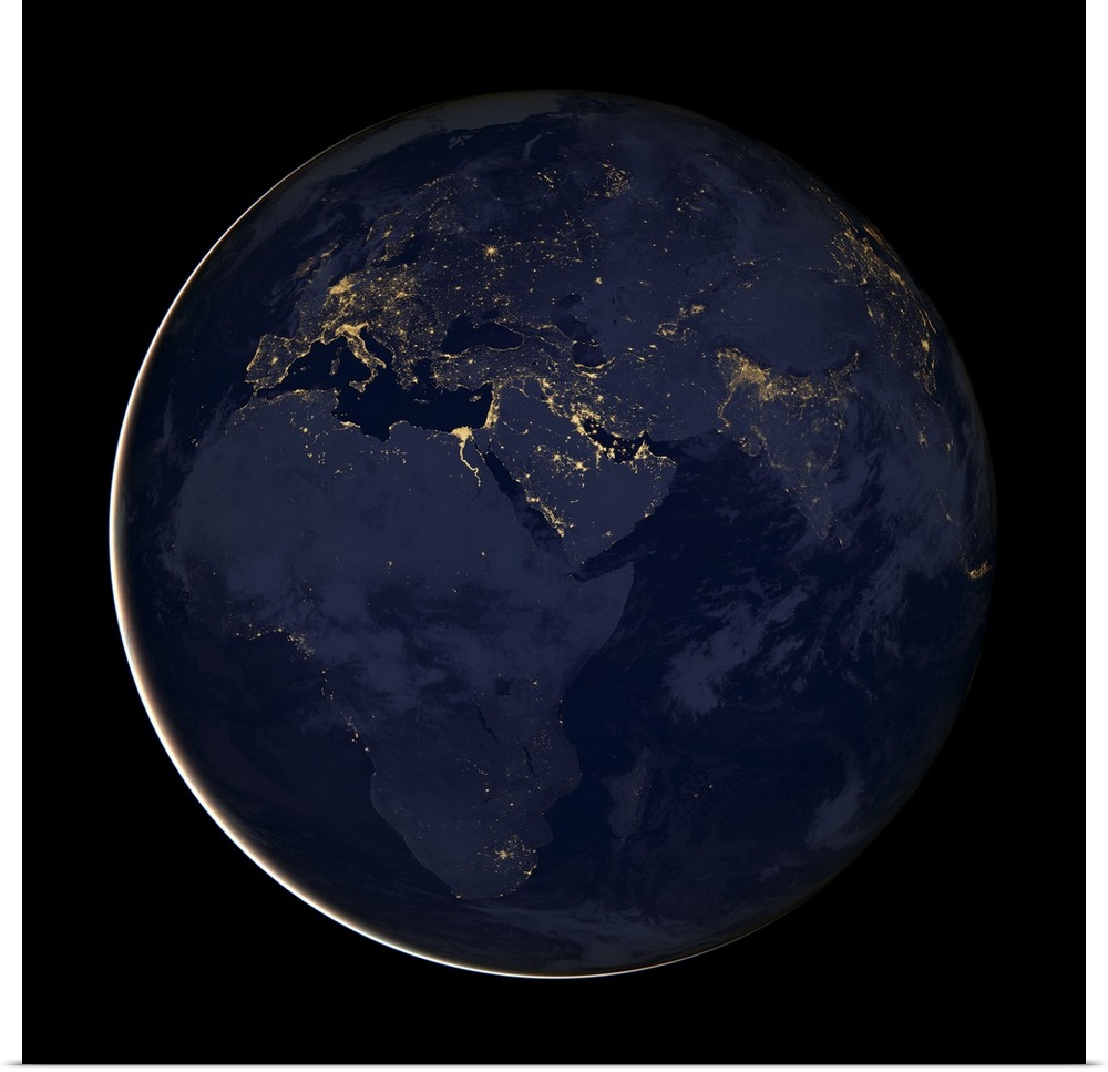 <p>Europe, Africa and Middle East at night with city lights.</p>
