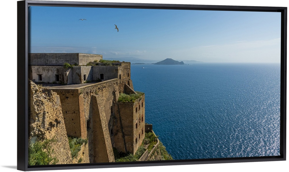 <p>Europe, Italy, Campania. The palazzo D'Avalos of Procida seen with Capri Island in the background.</p>