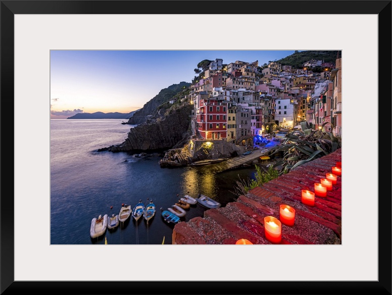 <p>Europe, Italy, Cinque Terre. the little harbour of Riomaggiore at Sunset.</p>