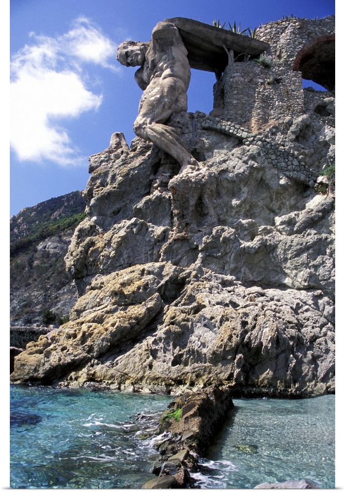 <p>Europe, Italy, Cinque Terre, Vernazza, Monterossa. Two gigantic statue of Neptune.</p>