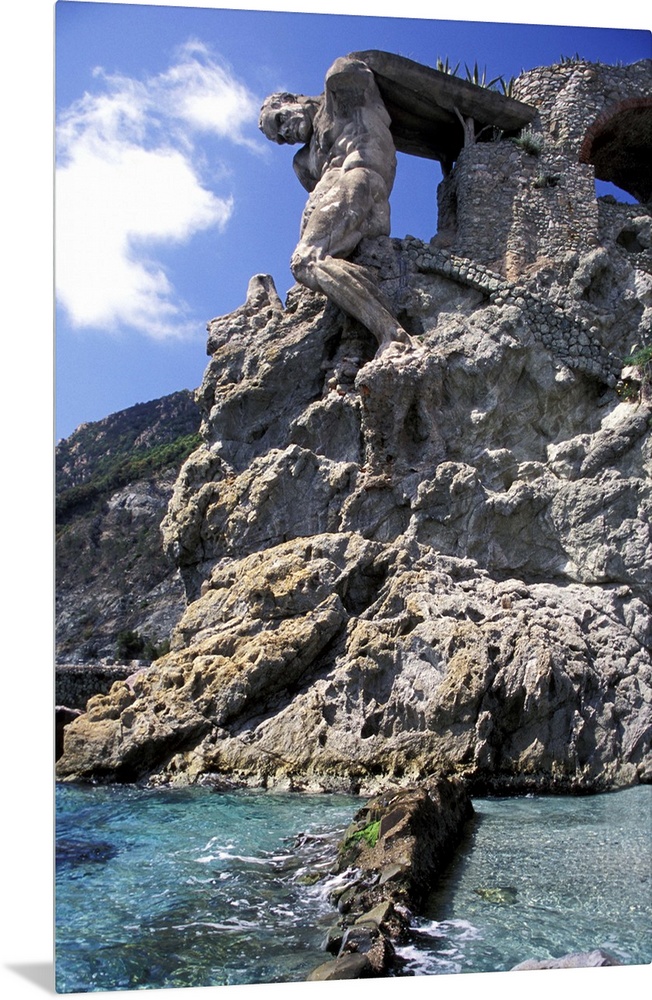 <p>Europe, Italy, Cinque Terre, Vernazza, Monterossa. Two gigantic statue of Neptune.</p>