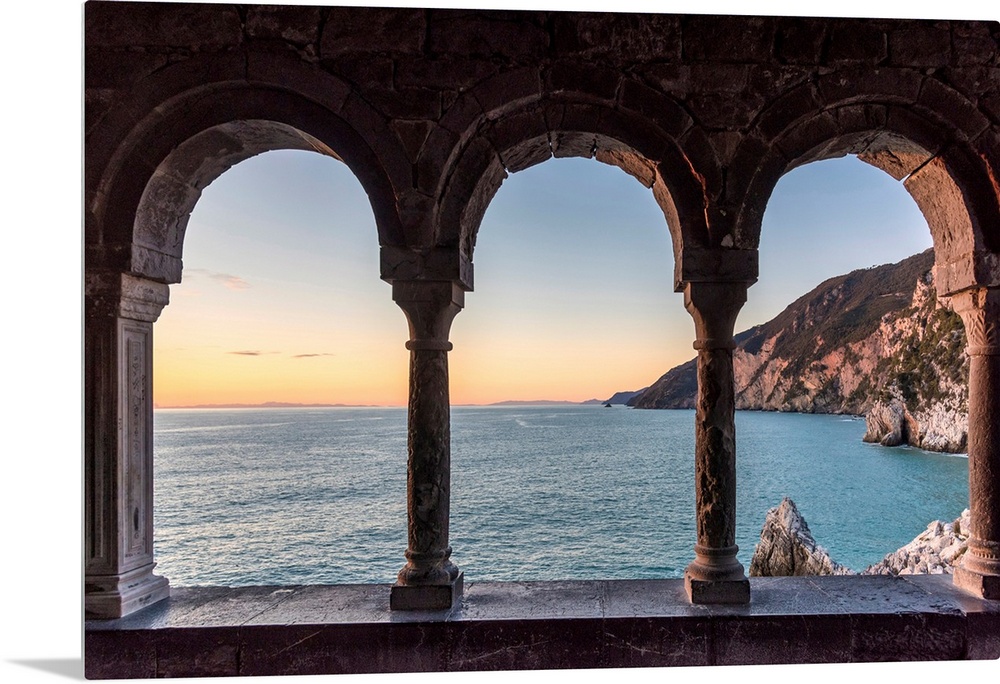 <p>Europe, Italy, Liguria, Portovenere, View Through The Arches Of San Pietro</p>