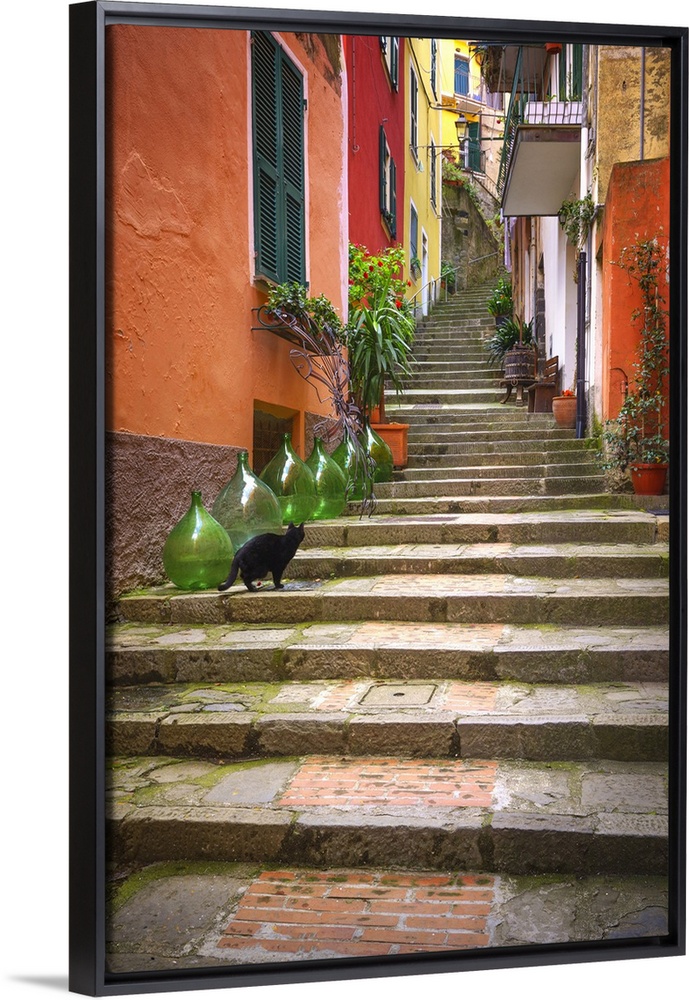 <p>Europe, Italy, Monterosso. Cat on long stairway. Credit: Jim Nilsen</p>