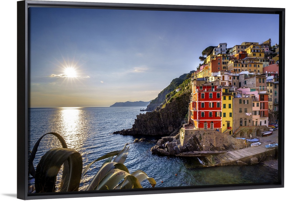 <p>Europe, Italy, Riomaggiore. Sunset on coastal town. Credit: Jim Nilsen</p>