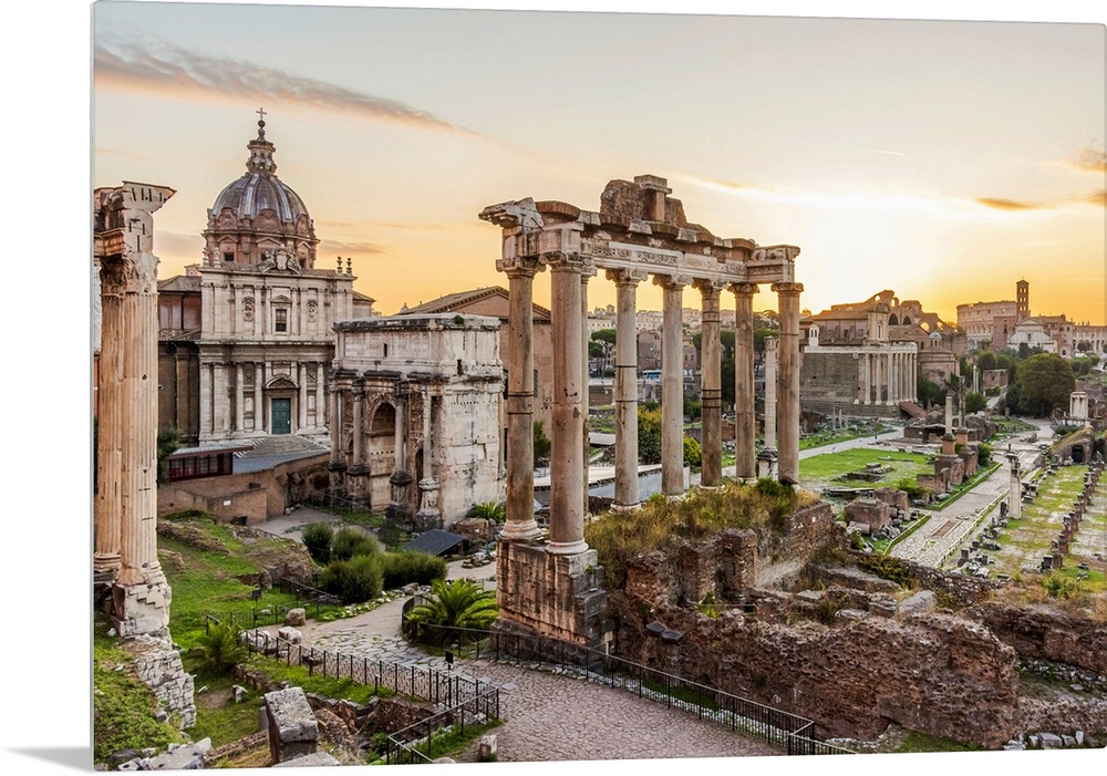 <p>Europe, Italy, Rome. The Forum Romanum with the Saturn temple at dawn.</p>