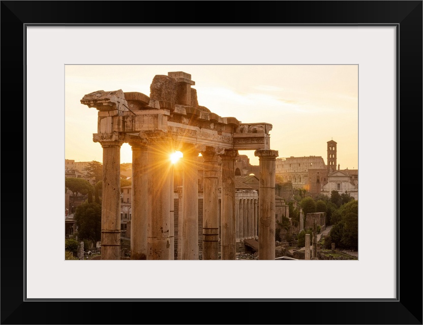 <p>Europe, Italy, Rome. The Forum Romanum with the temple of Saturn in the rising sun.</p>
