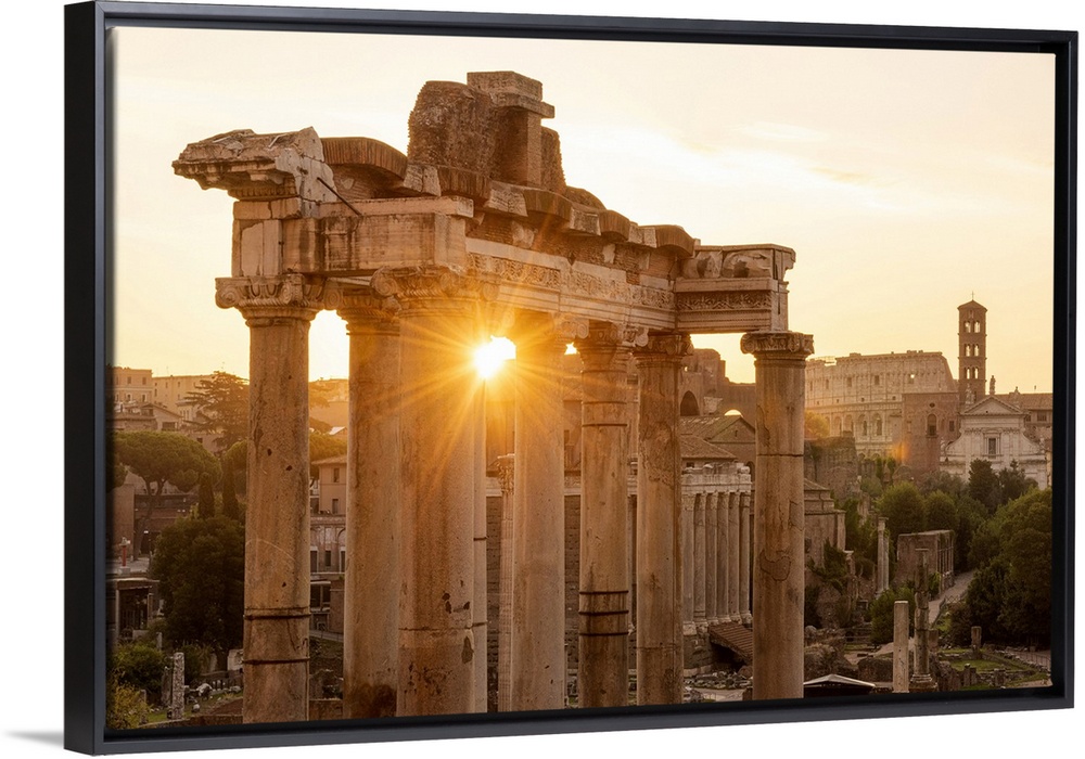 <p>Europe, Italy, Rome. The Forum Romanum with the temple of Saturn in the rising sun.</p>
