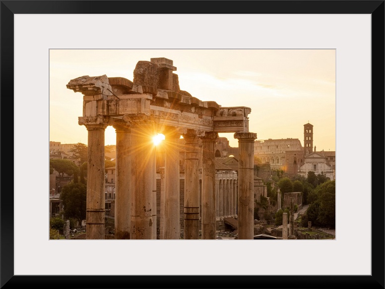 <p>Europe, Italy, Rome. The Forum Romanum with the temple of Saturn in the rising sun.</p>