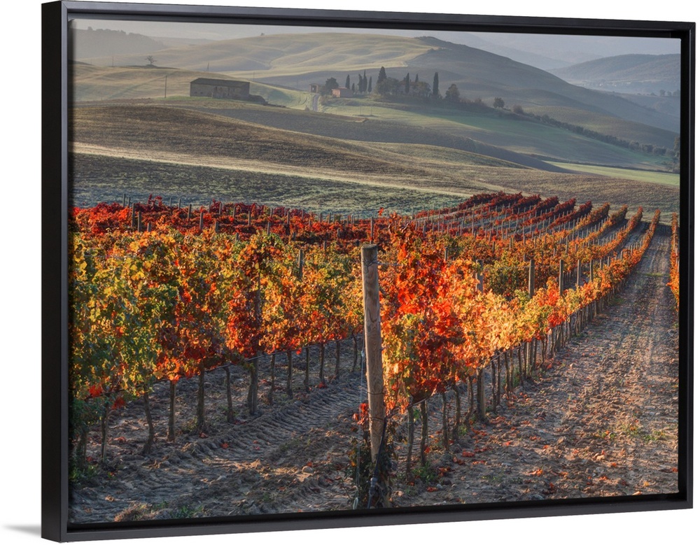<p>Europe, Italy, San Quirico, Autumn Vinyards in full color near San Quirico.</p>
