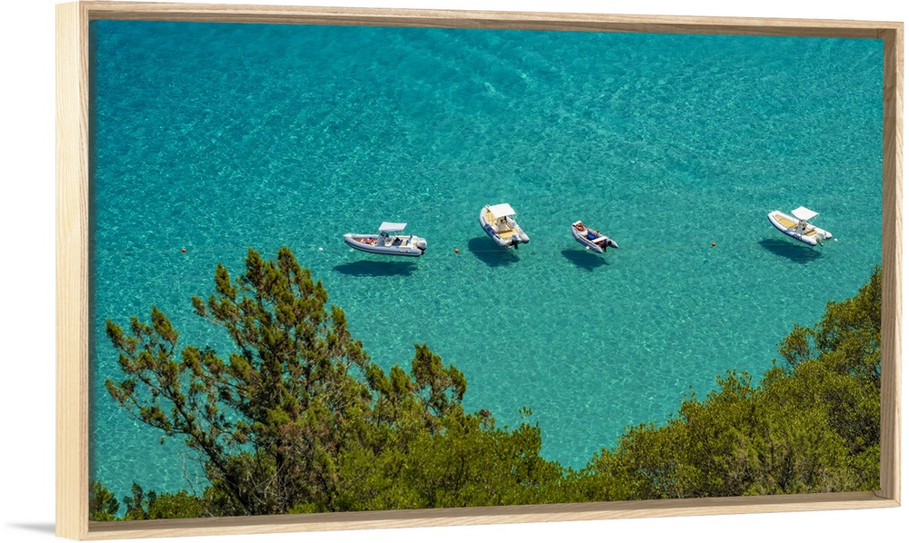 <p>Europe, Italy, Sardinia. View of the boats in Cala Luna.</p>