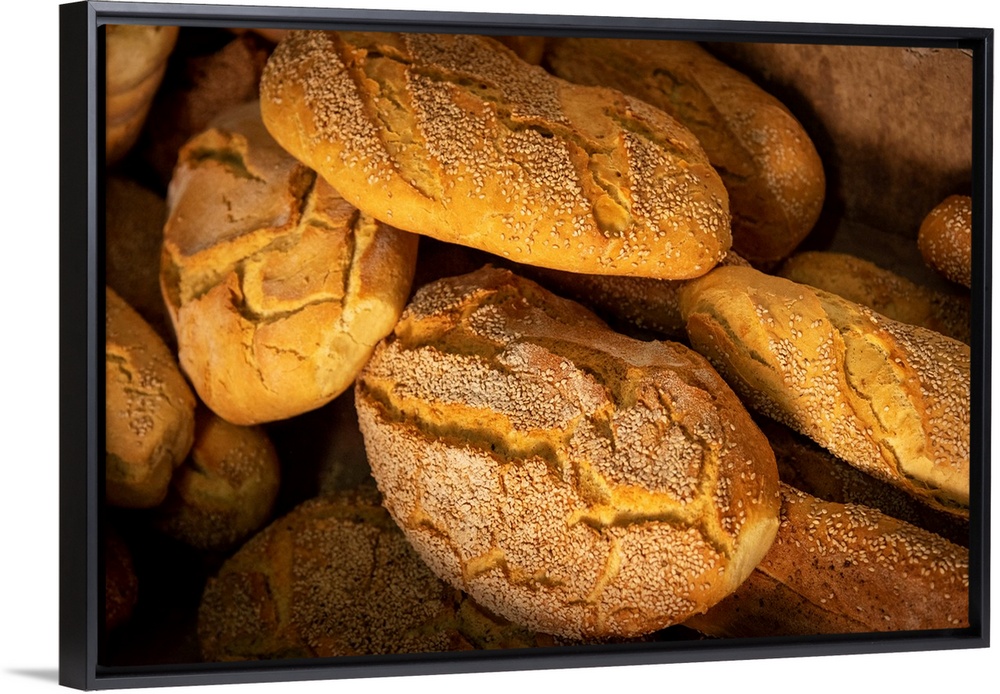 <p>Europe, Italy, Sicily. Sant'Angelo Muxaro. White bread loaves in the traditional bakery.</p>