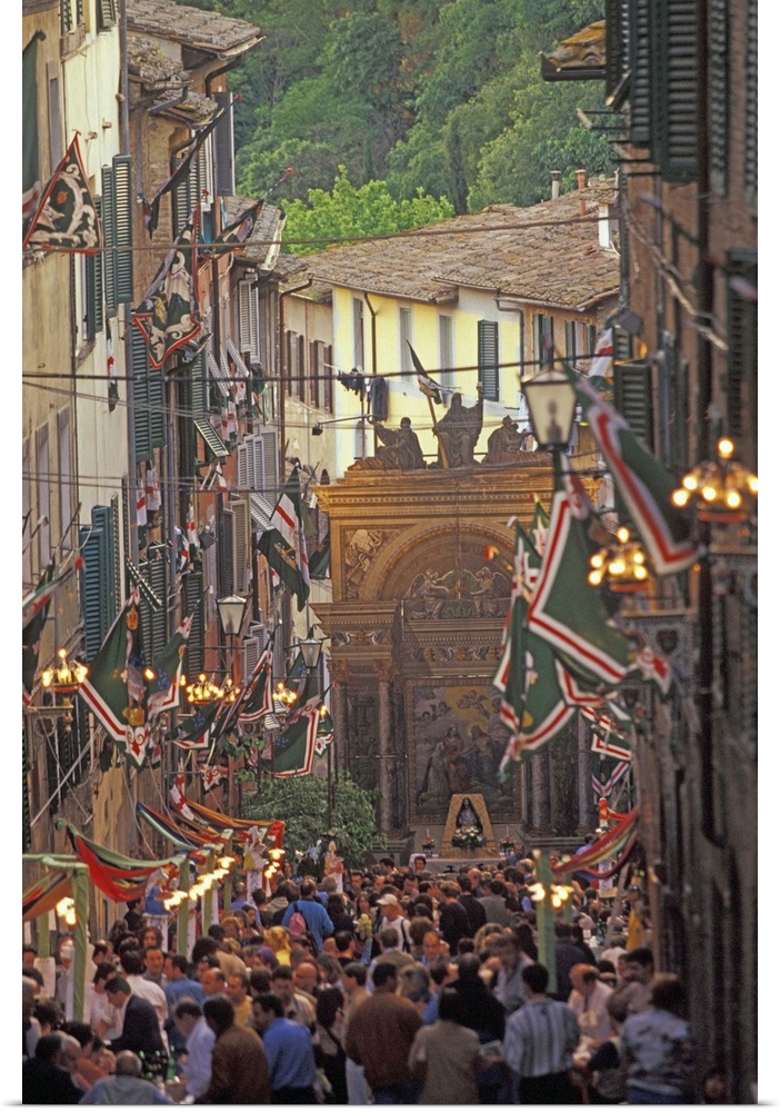 <p>Europe, Italy, Tuscany, Siena.Palio Team Fundraising "Party" by Basilica di San Domenico</p>
