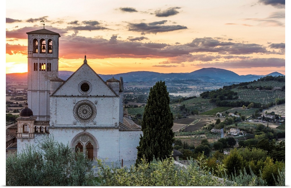 <p>Europe, Italy, Umbria, Assisi. Sunset at the Basilica of Saint Francis of Assisi.</p>