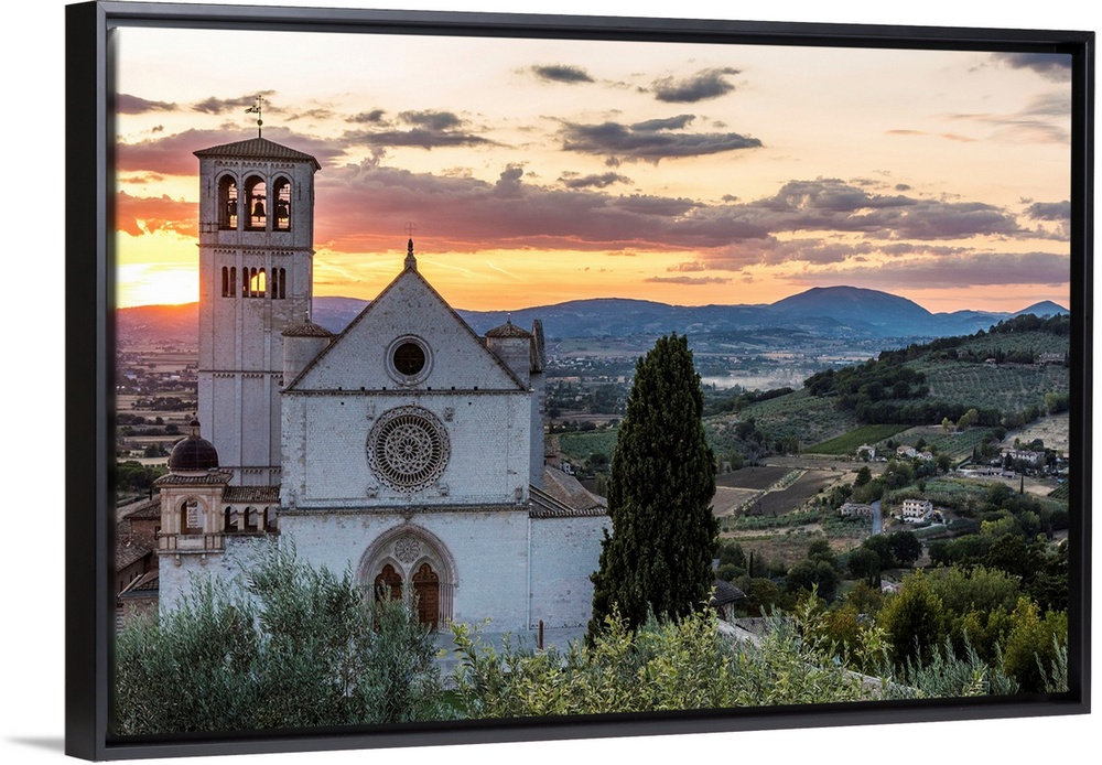 <p>Europe, Italy, Umbria, Assisi. Sunset at the Basilica of Saint Francis of Assisi.</p>