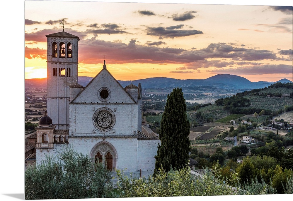 <p>Europe, Italy, Umbria, Assisi. Sunset at the Basilica of Saint Francis of Assisi.</p>