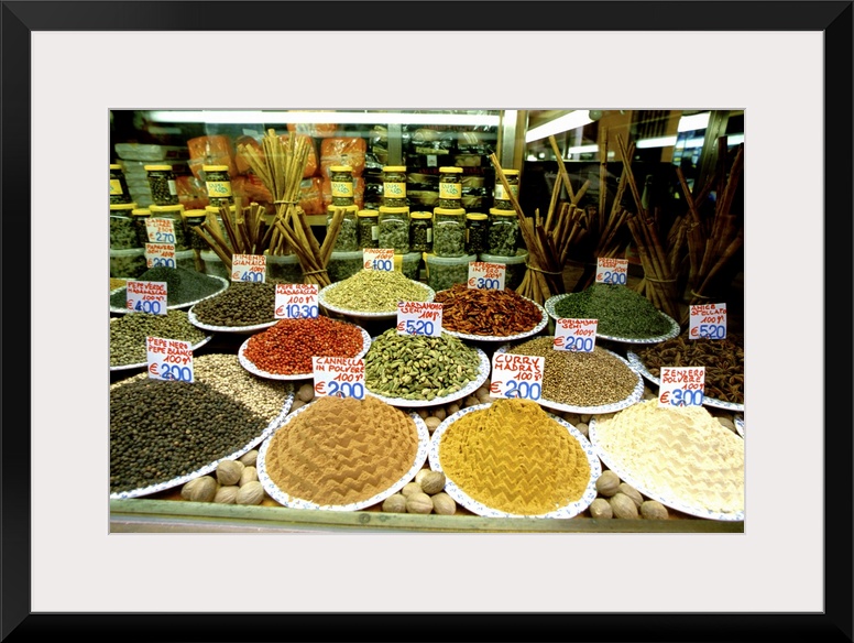 <p>Europe, Italy, Venice. Typical store front window, spice shop.</p>