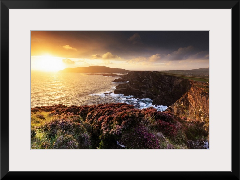 <p>Europe, Spectacular Kerry cliffs at sunset along the Ring of Kerry</p>