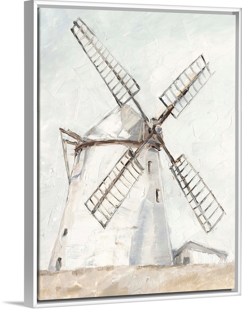 <p>A painting of a windmill in a simple, neutral rustic style. Would be a perfect fit in a cottage or farmhouse decor scheme.</p>