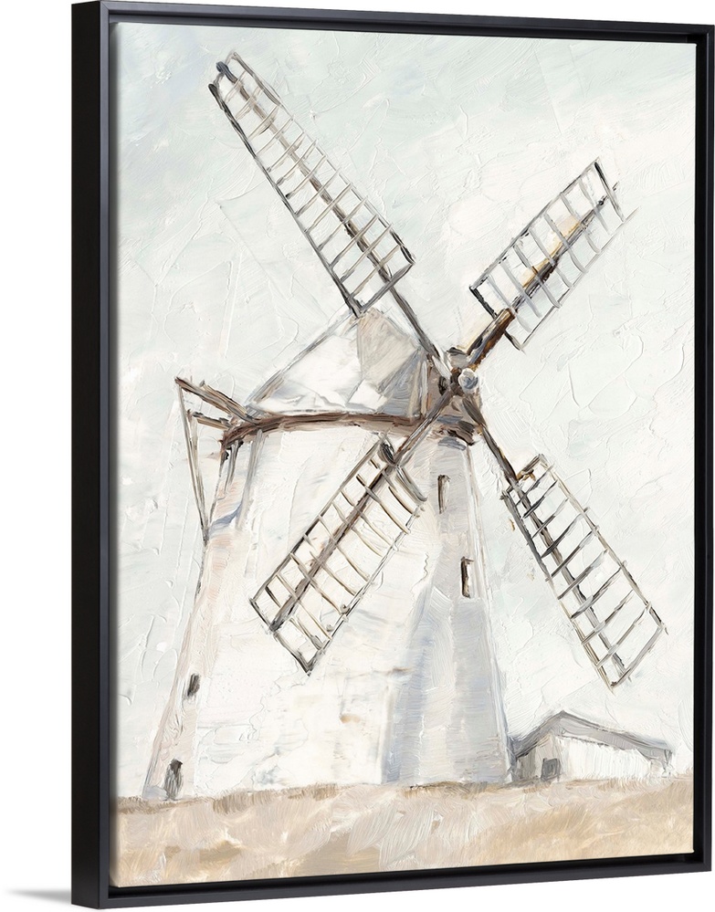 <p>A painting of a windmill in a simple, neutral rustic style. Would be a perfect fit in a cottage or farmhouse decor scheme.</p>
