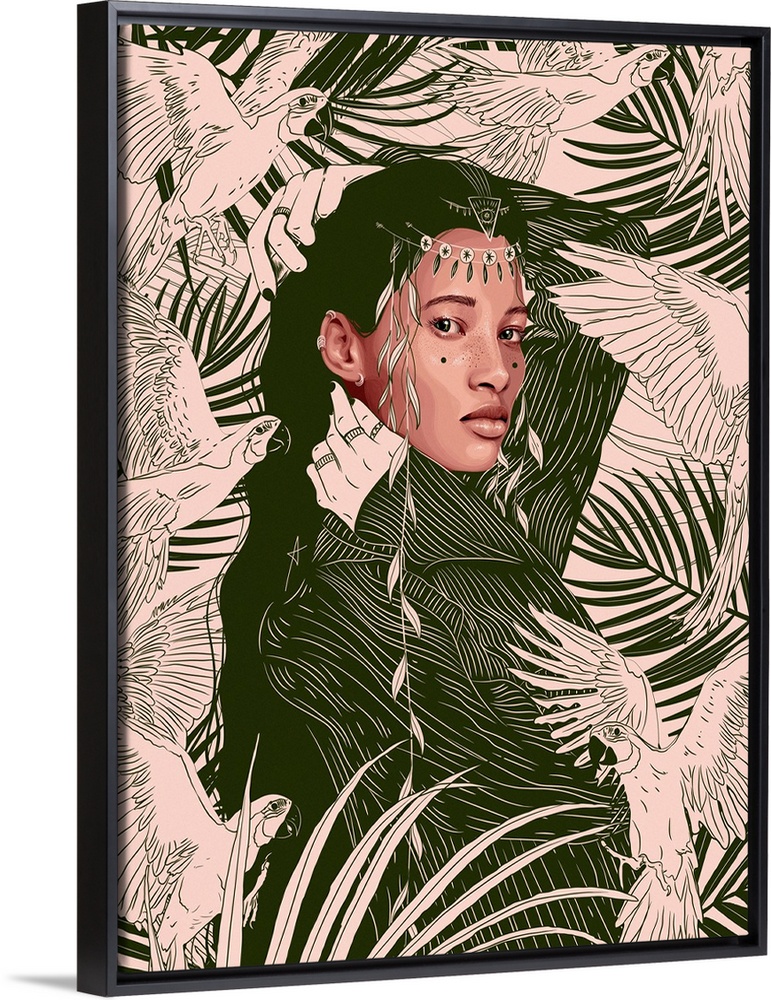 Ana Ariane Art Bohemian Contemporary Art Figurative Boho Revisited Graphic Art Green Wall Art People Portraits Surrealism